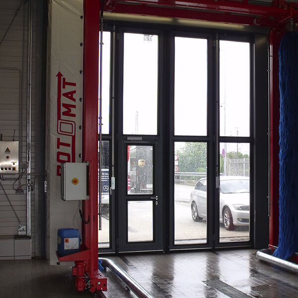 Omnibuses, trucks with or without trailer as well as transporter became washed all-automatic,
