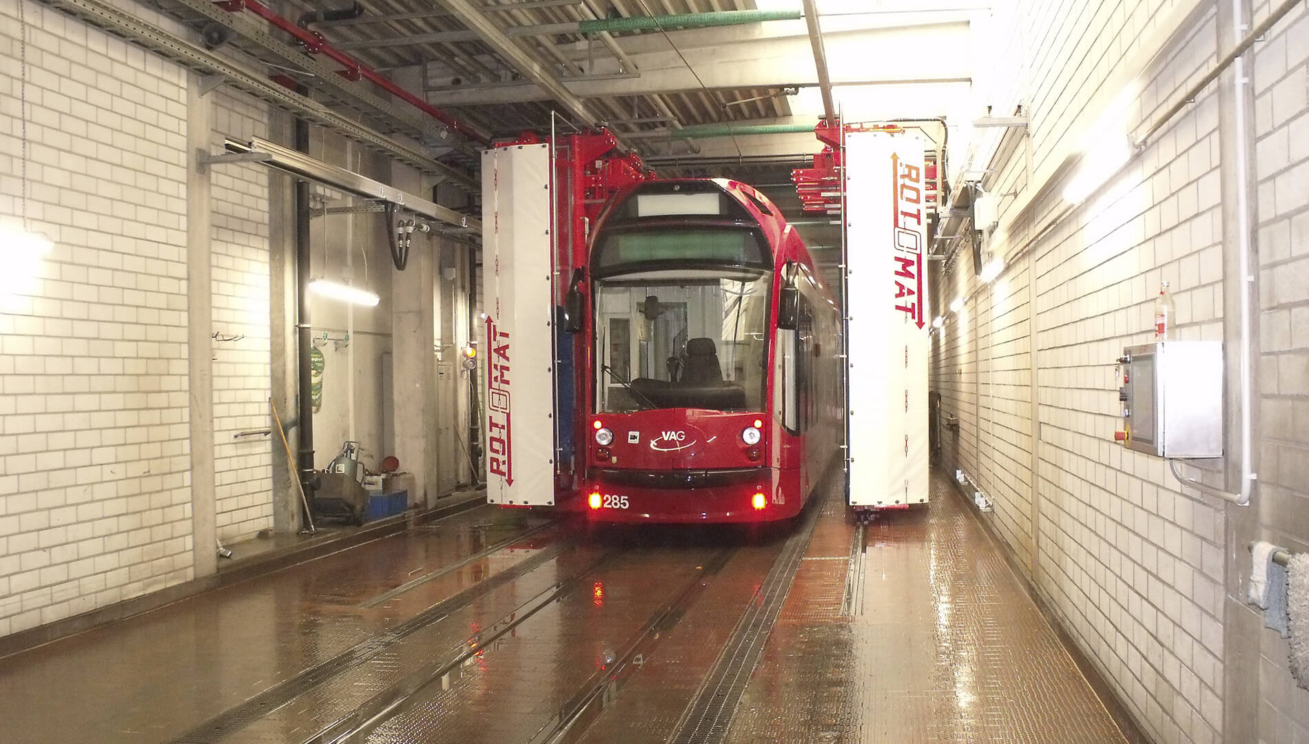 Trams, busses, trucks, transporter and cars as well as trains became washed all-automatic,