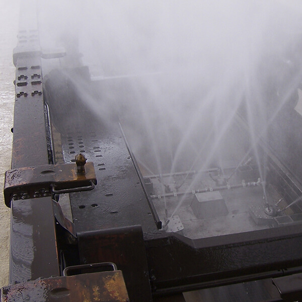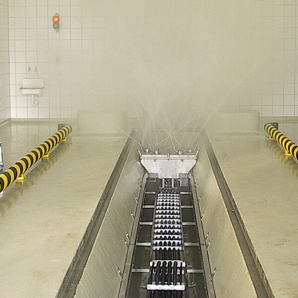 Verfahrbarer Düsenwagen mit 4 hydraulisch angetriebenen Hochdruckköpfen zur Reinigung des Unterbodens von PKW, Bussen, LKW, Kleintransporter und sonstigen Fahrzeugen. Durch die rotierenden Köpfe wird die Reinigung der Flächen optimiert. Automatische Aktivierung mit Lichtschranke oder Induktionsschleife.